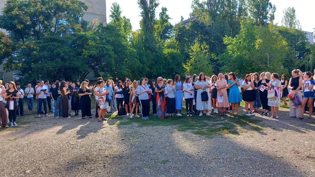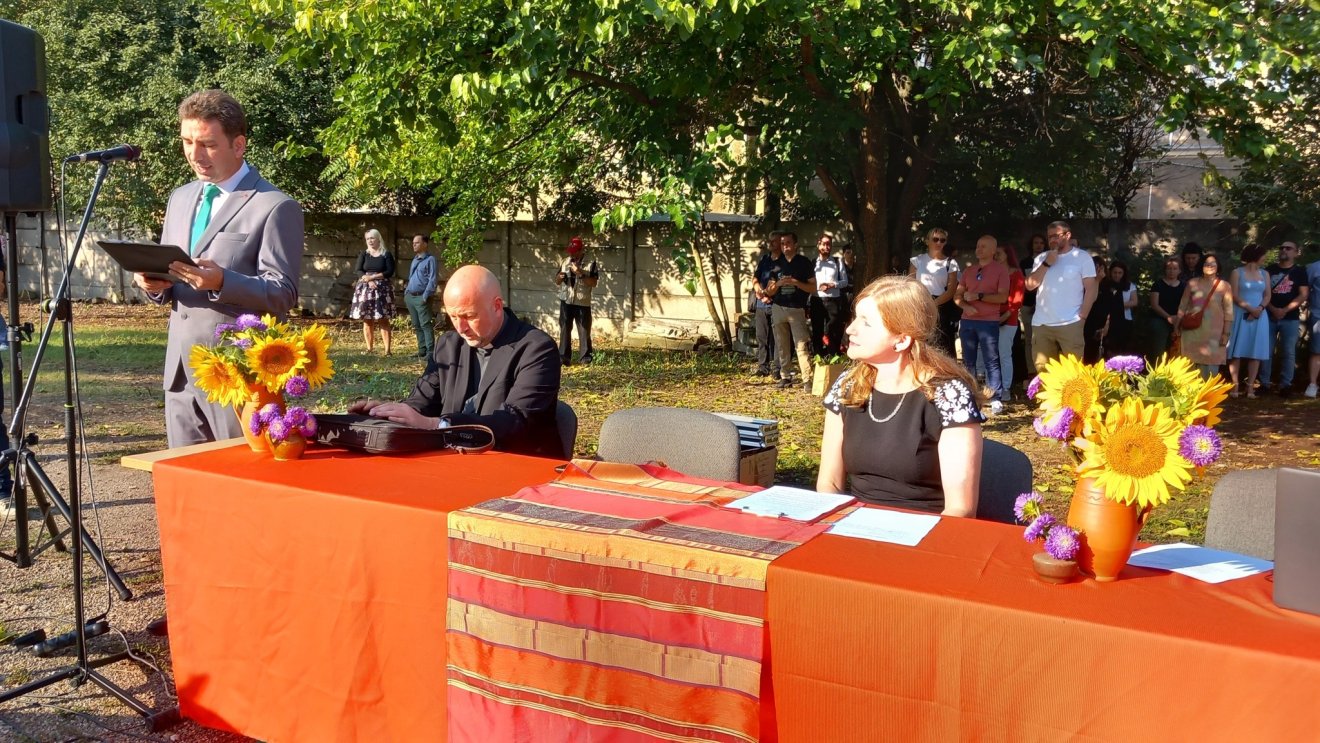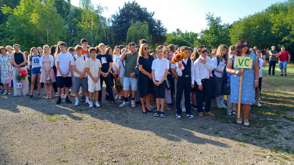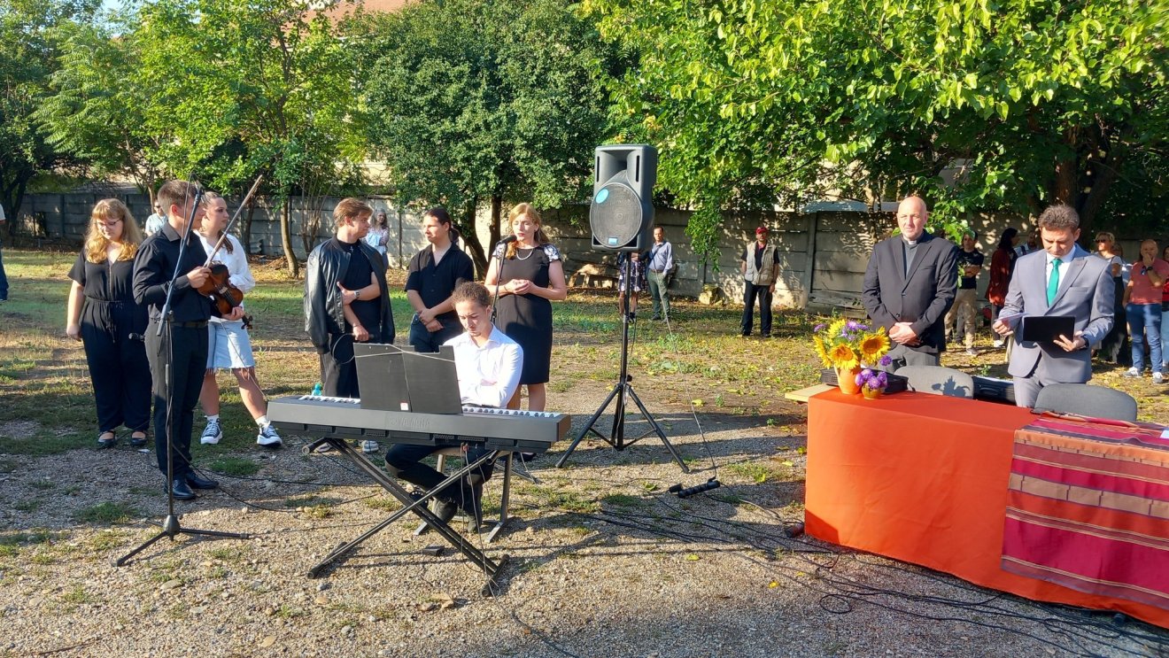 A román és a magyar himnusz csendült fel a tanévnyitó ünnepség kezdetén, a nemzeti imánk két tanuló, Györfi Edmond zongora- és Ferencz István hegedűkíséretével.