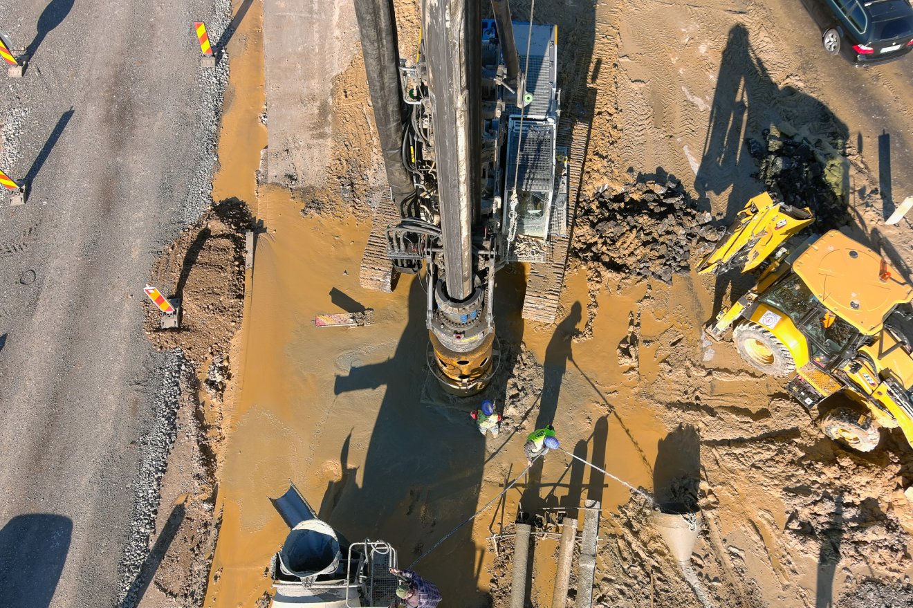 A felüljáró a rámpákkal együtt 640 méter hosszú lesz. Eddig húsz cölöpöt fúrtak le a harmincnégy közül, és mindeközben mellékutakat alakítanak ki.