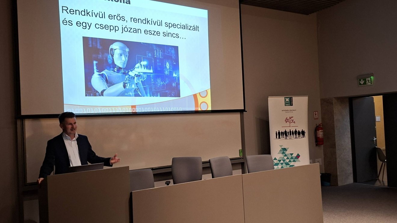 – fejtette ki dr. Avornicului Mihály. Megjegyezte: gyakori kérdések, hogy mennyire bízhatunk az MI által adott válaszokban, hiszen nem száz százalékosan biztos, hogy helyesek ezek. Fenyegetést jelent-e számunkra (a válasz erre az, hogy nem), korlátozni kell-e az MI hatóképességét jogszabályokkal, illetve