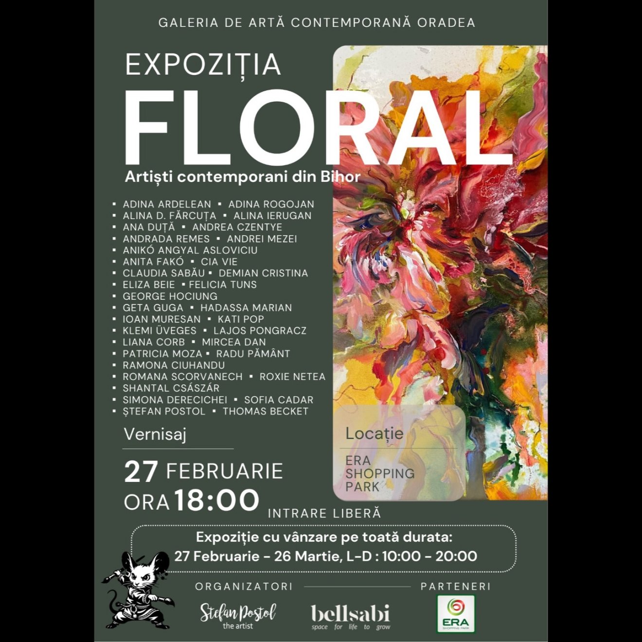 A nagyváradi ERA Park február 27-től a kortárs VIRÁGMOTÍVUMOK művészeti kiállításnak ad otthont, amely több mint 35 bihari művész alkotásait egyesíti.