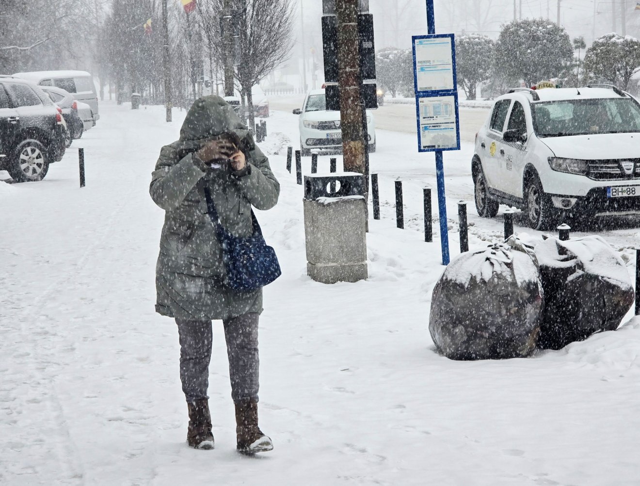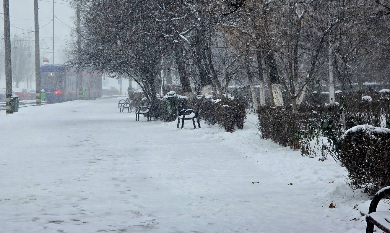 Nagyváradon ismét sűrűn hull a hó, a várost újra fehér takaró borítja. A szép látvány mellett viszont megnő a balesetveszély is, hiszen a járdákon lerakódott jeget is eltakarja a friss hó, és az úttest is csúszóssá válik.
