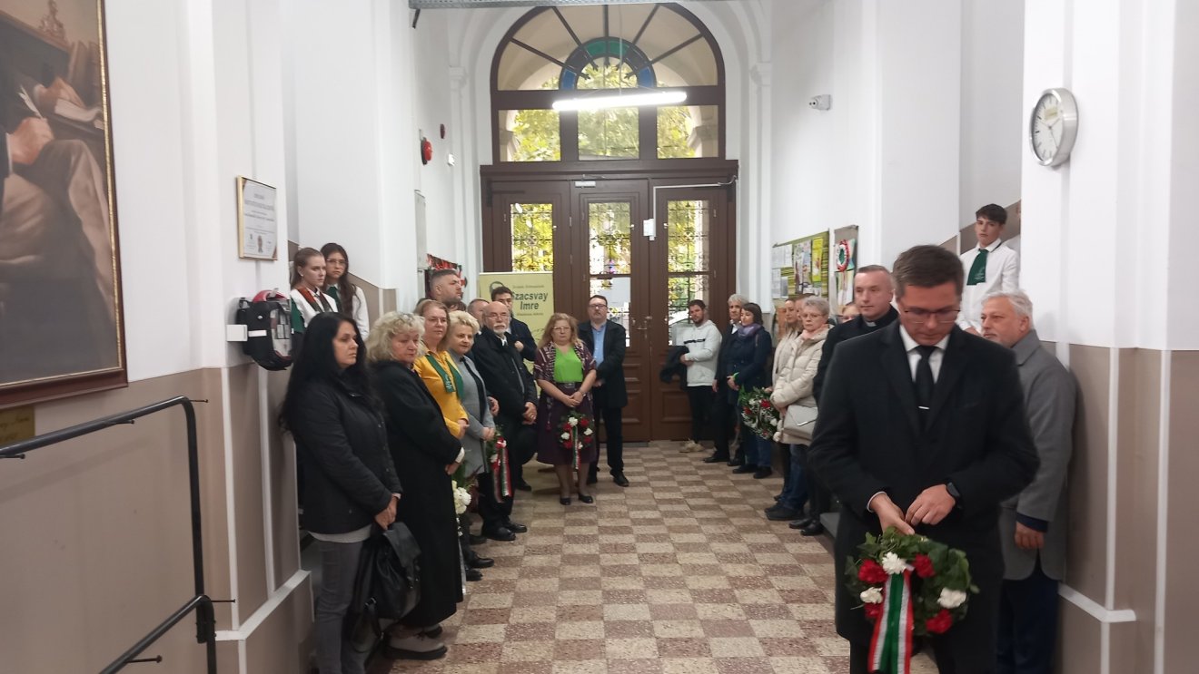 A házigazda tanintézmény nevében Vincze Melinda tanárnő köszöntötte az egybegyűlteket. Beszédében Kecse Gabriella tanfelügyelő, magyar szakos tanárnő azon meggyőződésének adott hangot, hogy Szacsvay Imre hős volt a szó legnemesebb értelmében, mégpedig az emberség, a hazaszeretet, az önfeláldozás és a magyarságtudat hőse. A mi feladatunk azonban nem az, hogy újabb hősöket „termeljünk” az utókor számára. Bloggerekből, influenszerekből, rapperekből és digitális tartalomkészítőkből is van már elég, nagy hiány van viszont az érző, értő, értéket teremtő emberekből. E téren kellene tehát inkább felzárkózniuk a mai fiataloknak azért, hogy önérzetes, a múltat nem feledő és ebből okuló felnőttekké váljanak. És annak érdekében, hogy egy olyan világban élhessenek, ahol nincs helye az önkényuralomnak, és nincs szükség ártatlan áldozatokra, hangsúlyozta a pedagógus.