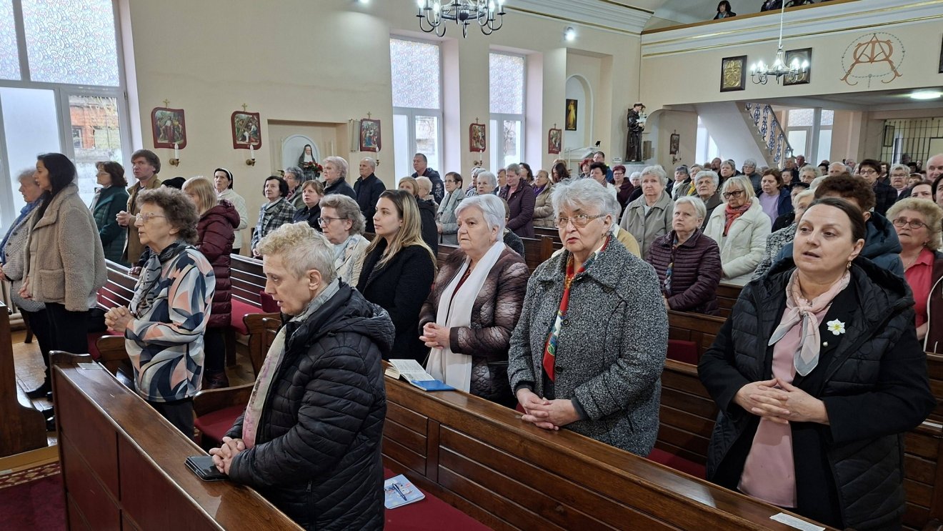 A csütörtök délutáni szentmise kezdetén Bărbuț Péter plébános köszöntötte házigazdaként a jelenlevőket. Azt kérte: imádkozzanak a kórházban fekvő Fodor József általános helynökért is, a plébánia alapítójáért.