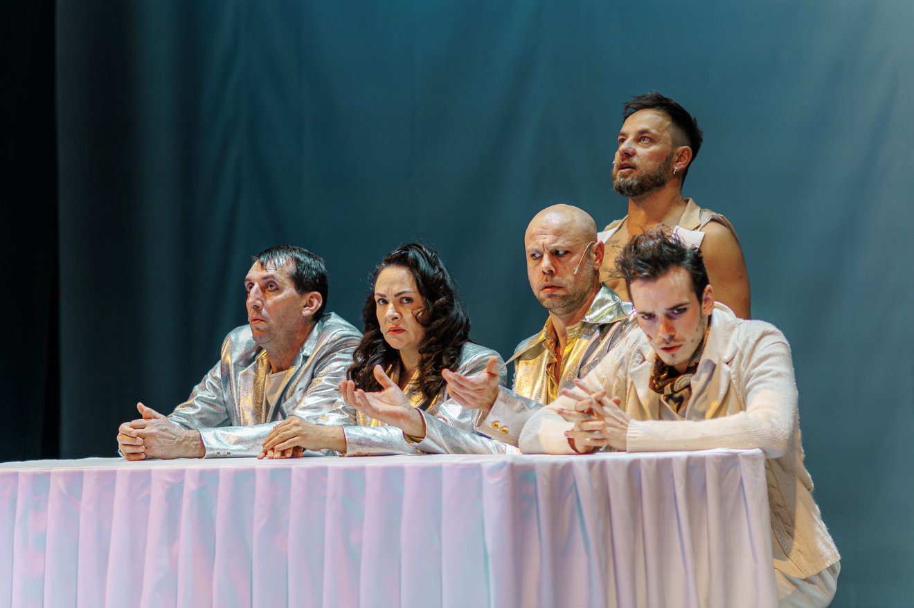 Az Athéni Timon Shakespeare kevésbé sikerült darabjai közé tartozik, mert a történet nem elég kidolgozott, és a szereplők lélektana is meglehetősen vázlatos és egysíkú maradt, legalábbis a legjobb Shakespeare-darabok mércéjével mérve. Így Timon nem tud olyan tragikus hőssé nemesedni, mint például Lear király, akivel pedig sok hasonlóságot mutat, különösen ami az emberekbe vetett, szinte gyermeteg hitét illeti, hogy aztán az elárultatás pillanatában annál nagyobb legyen a csalódás és annál rettenetesebb a bukás. Shakespeare darabjának a szerző költői nyelvezete – Szabó Lőrinc zseniális fordításában – és filozófiai mélysége biztosít múlhatatlan értéket, és ezek nagyon hatásos elemei a Tomcsa Sándor Színház előadásának is. A legnagyobb érdem ebben a tekintetben a Barabás Árpádé, aki alakításával és dikciójával érvényt tud szerezni Shakespeare halhatatlan szövegének, és hitelesen jeleníti meg a saját vagyona által megvakított jellemet. Ezzel szemben kevésbé sikerült figura a Szűcs-Olcsváry Gellért alakította proletár Apemantus, mert ezt az alakot érzésem szerint nem sikerült integrálni a darabba: munkaruhában, fejvédő sisakkal, fúrógéppel téblábol és tesz-vesz a színpadon és környékén, és joviális bölcsködéssé tompítja a cinikus Apemantus epés, dühös, gonosz, de elevenbe vágó kirohanásait. Az előadás nagy érdeme, hogy érzékelhetővé tette azt, hogy ma is mennyire aktuális ez a reneszánsz korban született, az ókorban játszódó darab, és még Elon Muskot is figyelmezteti arra, hogy vigyázzon a vagyonára, nehogy a hamis barátok őt is megcsalják.