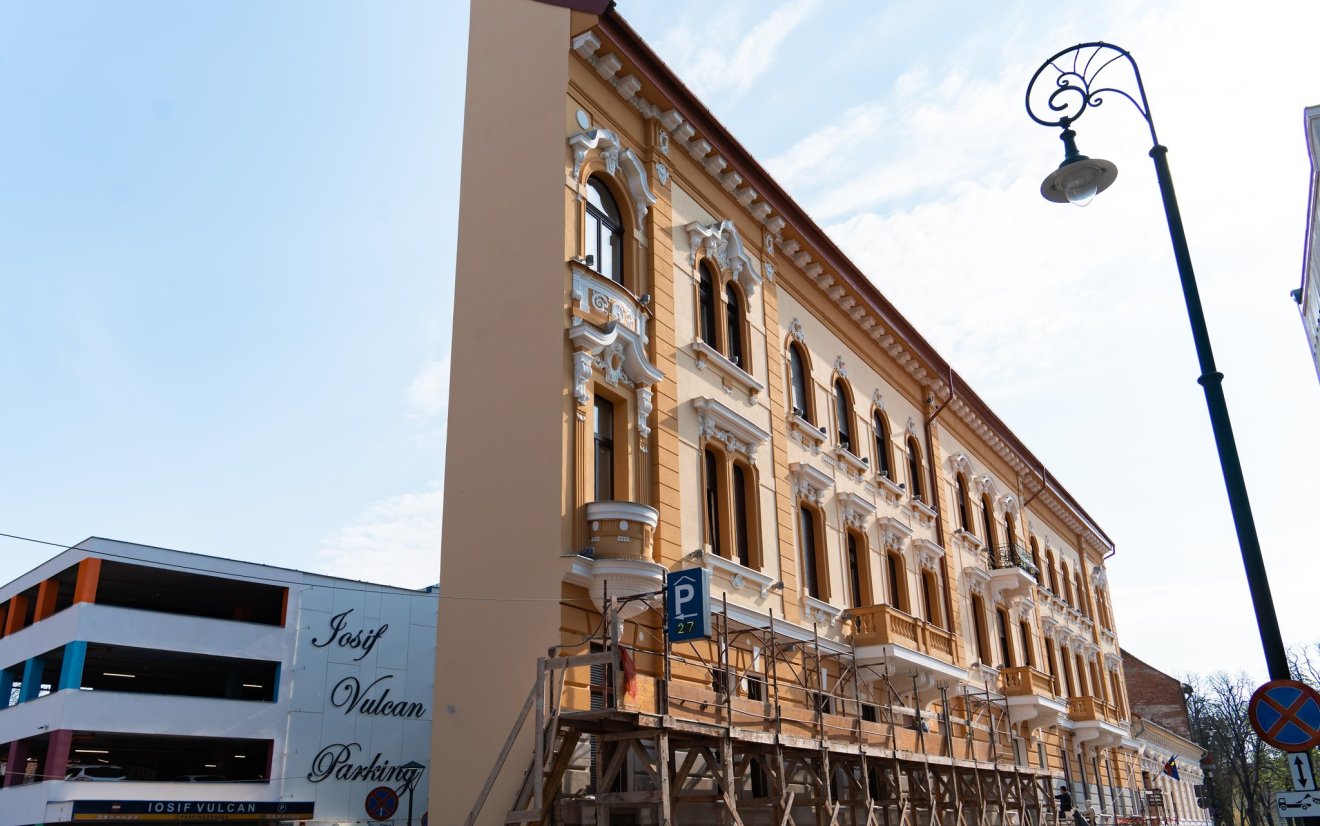 Az Iosif Vulcan utca 14. szám alatti ingatlan homlokzatának tatarozása során