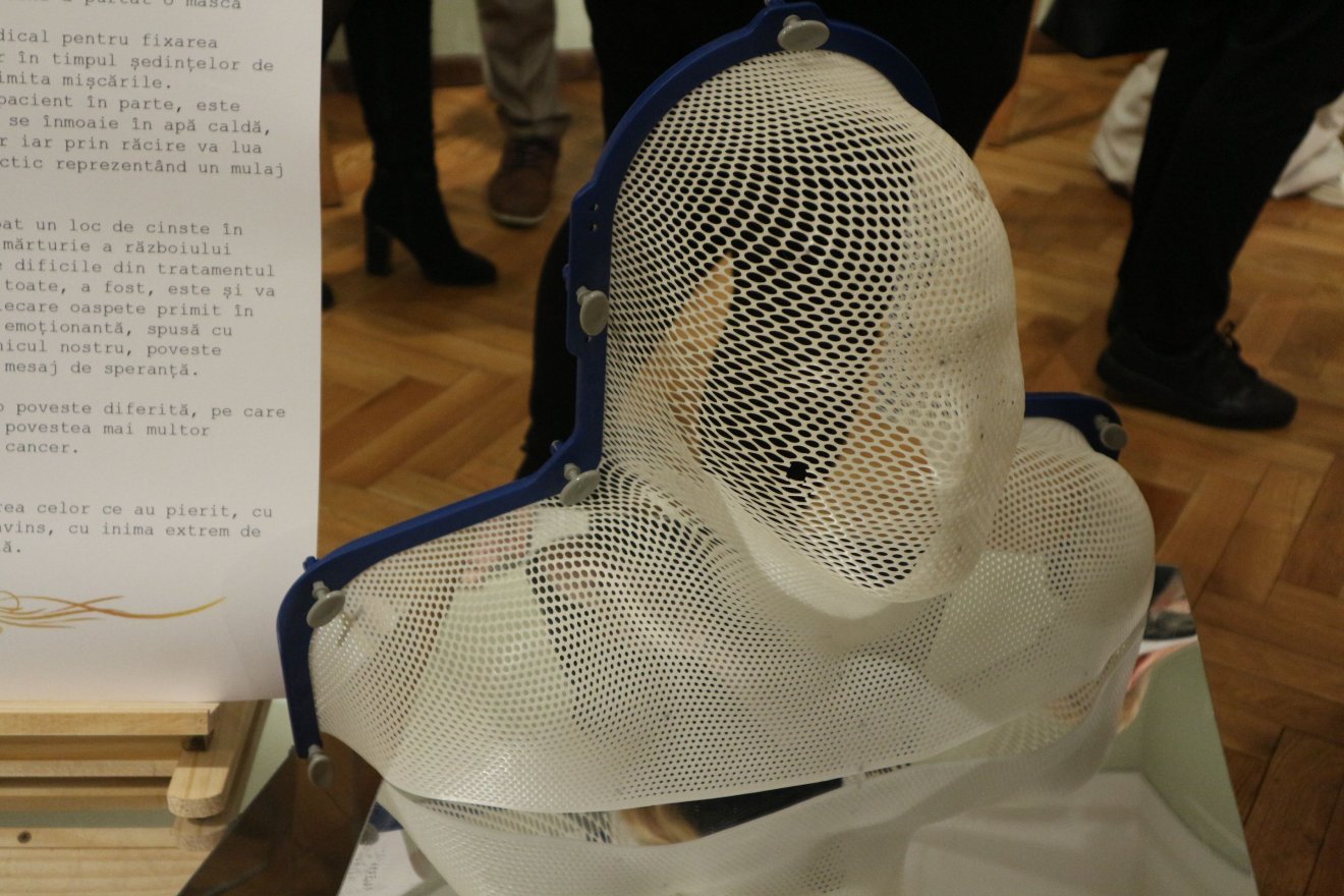 Alina Dascăl, az egyesület elnöke röviden ismertetve történetüket, az egyesület alapításának, valamint a tárlatnak az ötletét. Mint elmondta, férje, Sandu Dascăl, az egyesület társalapítója a sugárkezelések alkalmával viselt speciális termoplasztikus maszkot. Ezeket a maszkokat minden páciens számára személyre szabottan készítik el, a hőre lágyuló anyagot rásimítják a fejre (vagy adott esetben a besugárzást igénylő testrészre), majd hideg levegővel megszilárdítják. A maszk tökéletesen felveszi a fej, az arc és a nyak formáját, így biztosítva a pontos rögzítést a besugárzás során.