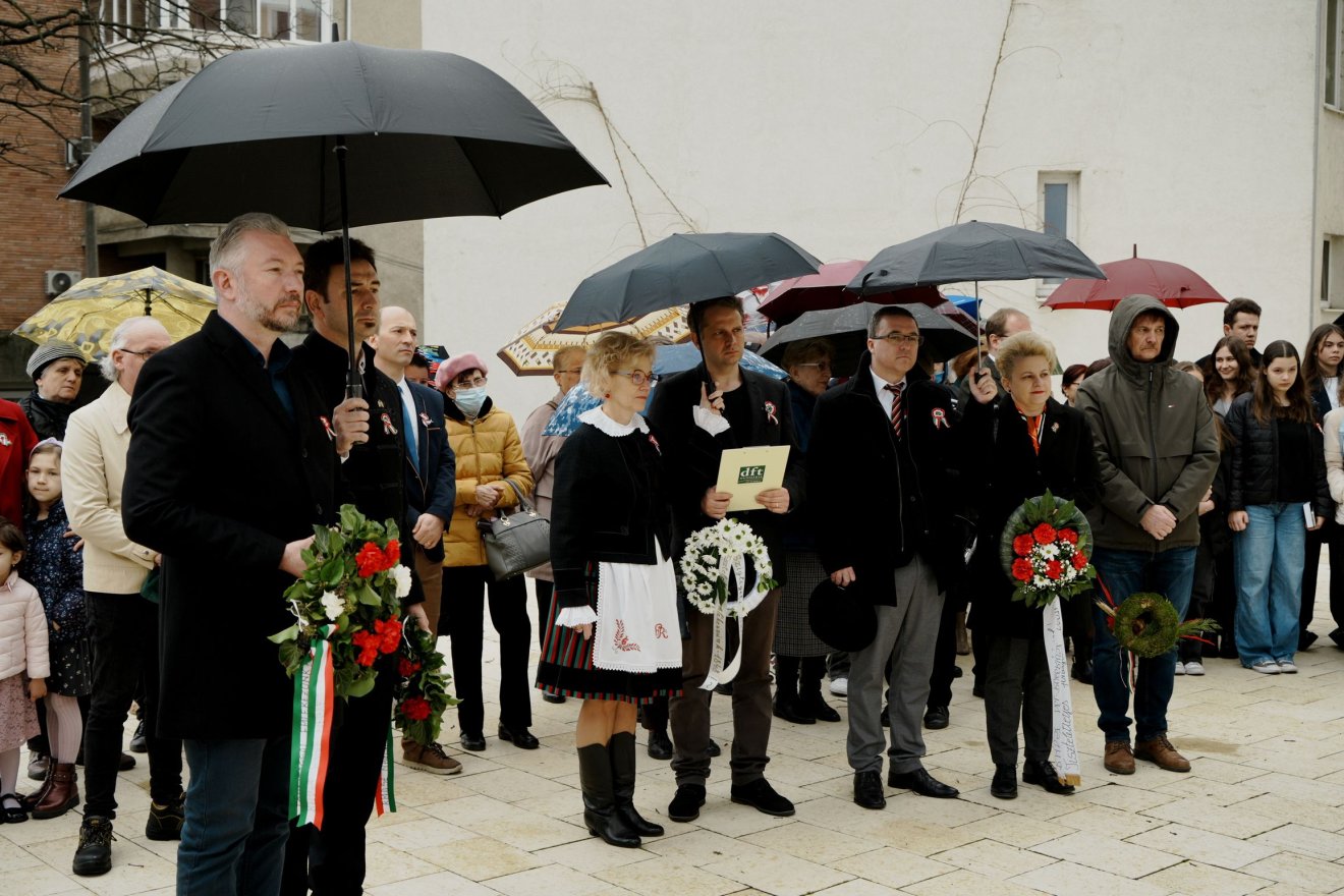 Hunyadi István színművész és Szőke Dóra, a 16-os Számú Általános Iskola hetedikes diákjának a szavalatai után koszorúzással ért véget a rendezvény.