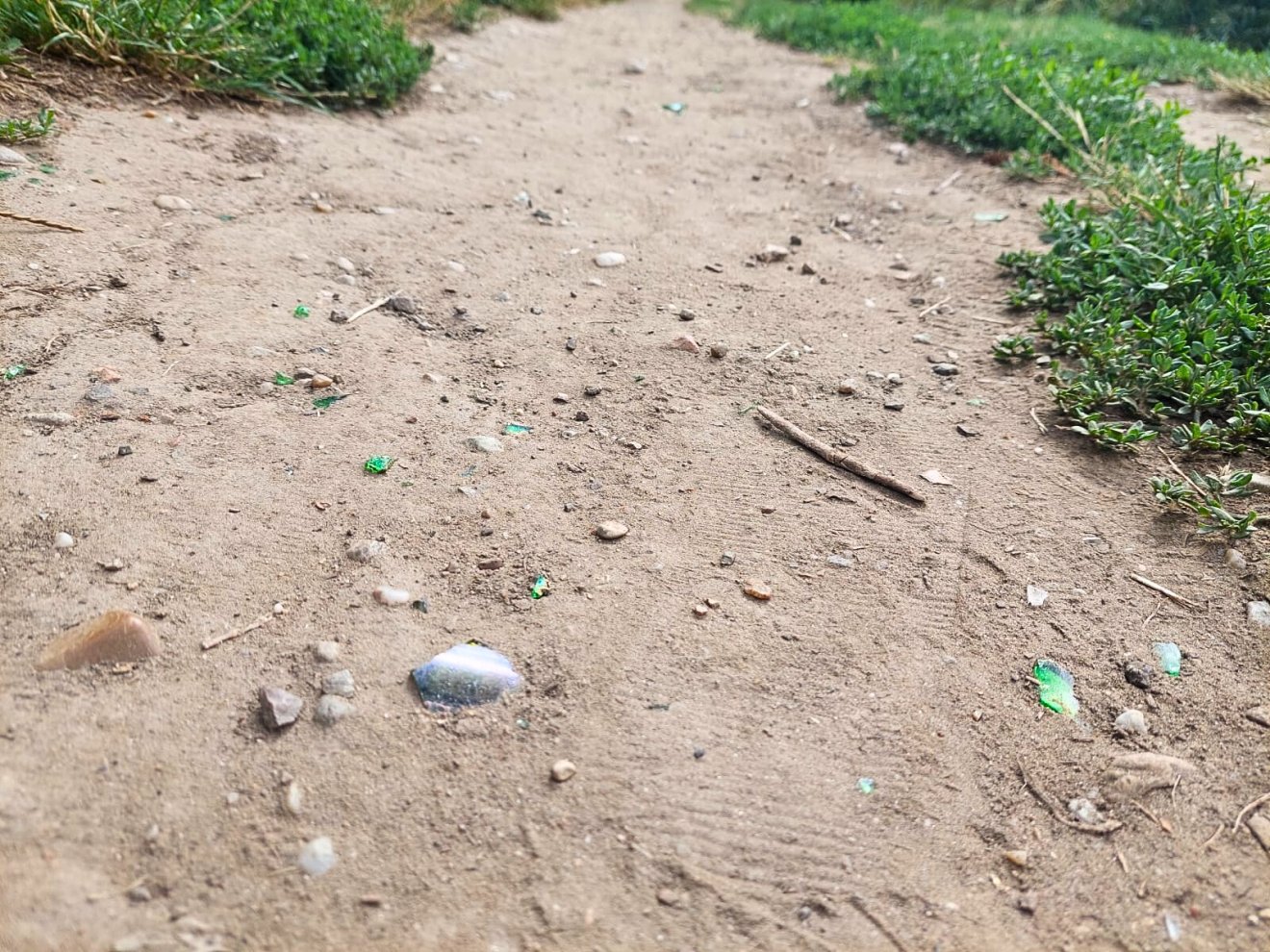 Nagyon nagy kellemetlenséget okoz azonban az a nehezen értelmezhető jelenség, amit sikerült valamelyest lencsevégre kapni: az alsó partszakasz jelentős része, a Szent László híd irányából majdnem egészen a Garasos hídig, tele van üvegszilánkokkal. Többnyire zöld és átlátszó üvegdarabokról van szó, egy részük már alaposan bele lett taposva a homokos földbe, de vannak egészen nagy, kiálló darabok is. Talán itt lenne az ideje, hogy azok, akik a köztisztaságért felelősek, vagy a vízügyesek megszüntessék ezt az állapotot, mielőtt a nyári, könnyed viseletek okán valakinek átlyukad a lábbelije, és megsérül.