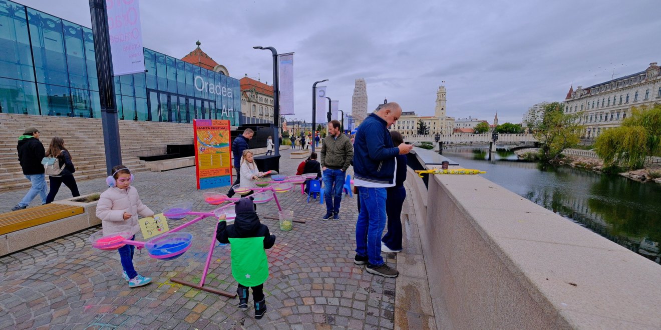 A kézműves foglalkozások a Körös parton, a nemrégiben kialakított Kossuth/Independenței utcai téren kaptak helyet, ma még várják a családokat.