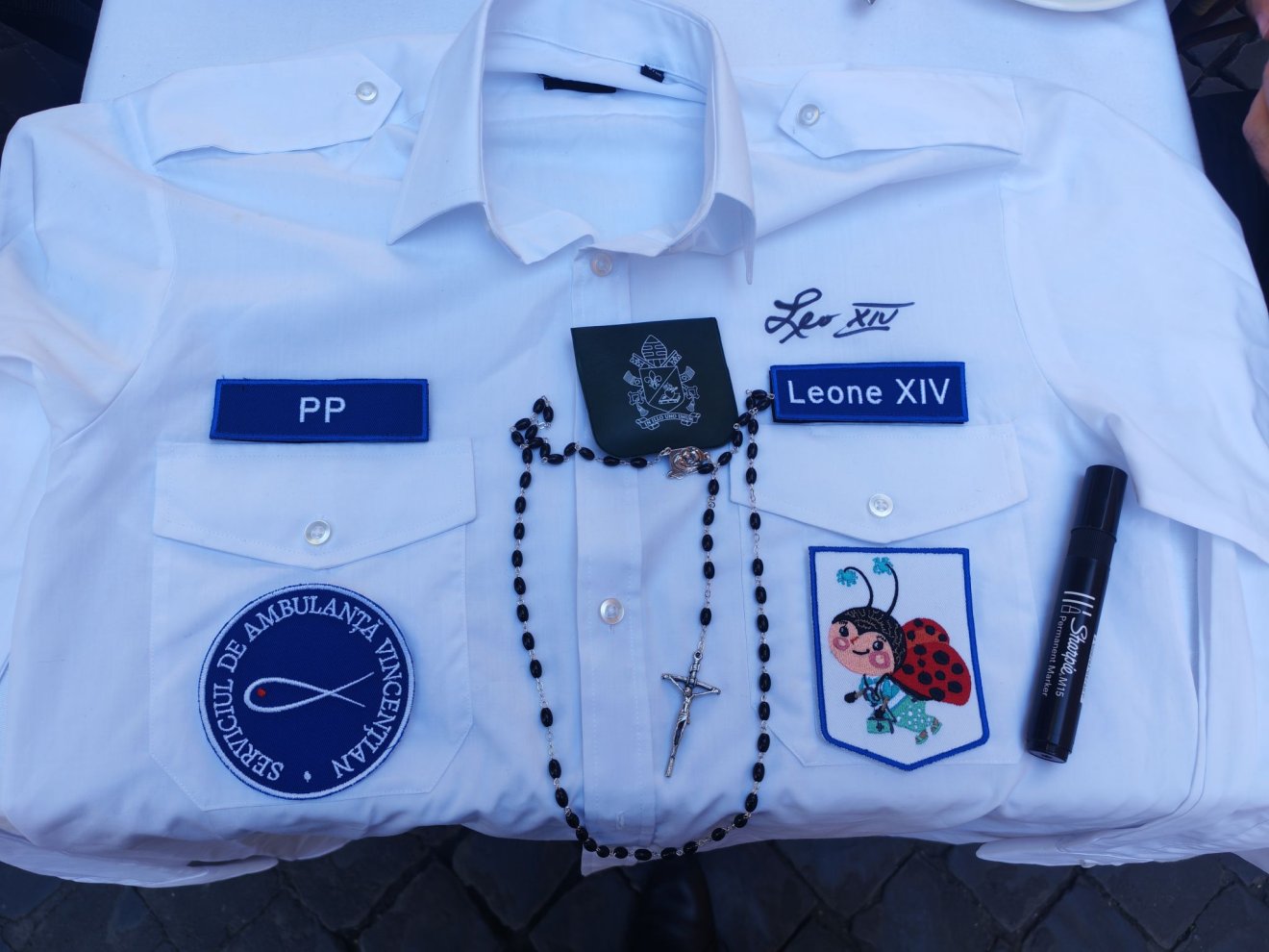 A delegáció ajándékokkal is készült: egy Szent Vincét ábrázoló plakettet, egy vincés mellkeresztet, valamint egy különleges gyermekmentő inget adtak át a Szentatyának. Az ing a szervezet díszegyenruhájára emlékeztet, és azzal a kéréssel nyújtották át, hogy a pápa kézjegyével erősítse meg a nagyváradi Szent Vince Társaság, a Gyermekmentő Szolgálat és Róma közötti kapcsolatot. XIV. Leó pápa végül aláírta az inget, majd mindenkivel kezet fogott.