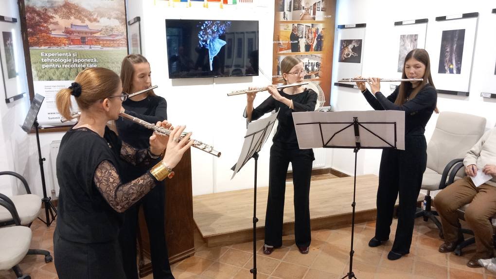 A zenei pillanatokról a művészeti líceum fuvolistái gondoskodtak, akiket Nagy Gabriella igazgatóhelyettes mutatott be: Mircescu Georgiana tanárnő és tanítványai – Szabó Tamara, Gyulai Naomi és Gyulai Viktória.
