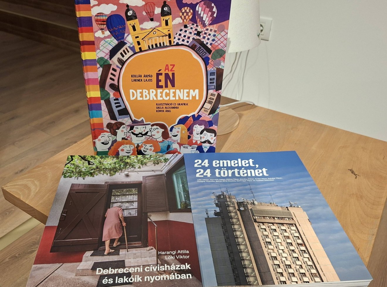 A Debreceni cívisházak és lakóik nyomában című album az alföldi város jellegzetes parasztpolgári lakóházainak történeteit eleveníti meg. A 24 emelet, 24 történet című kötet a második világháborúban szétbombázott Petőfi térre felhúzott, titokzatos, társtalan magasház lakóinak különleges közösségét mutatja be. A Sajó című album pedig az art deco világhírű debreceni mesterének, a holokauszt-túlélő Sajó Istvánnak állít emléket.