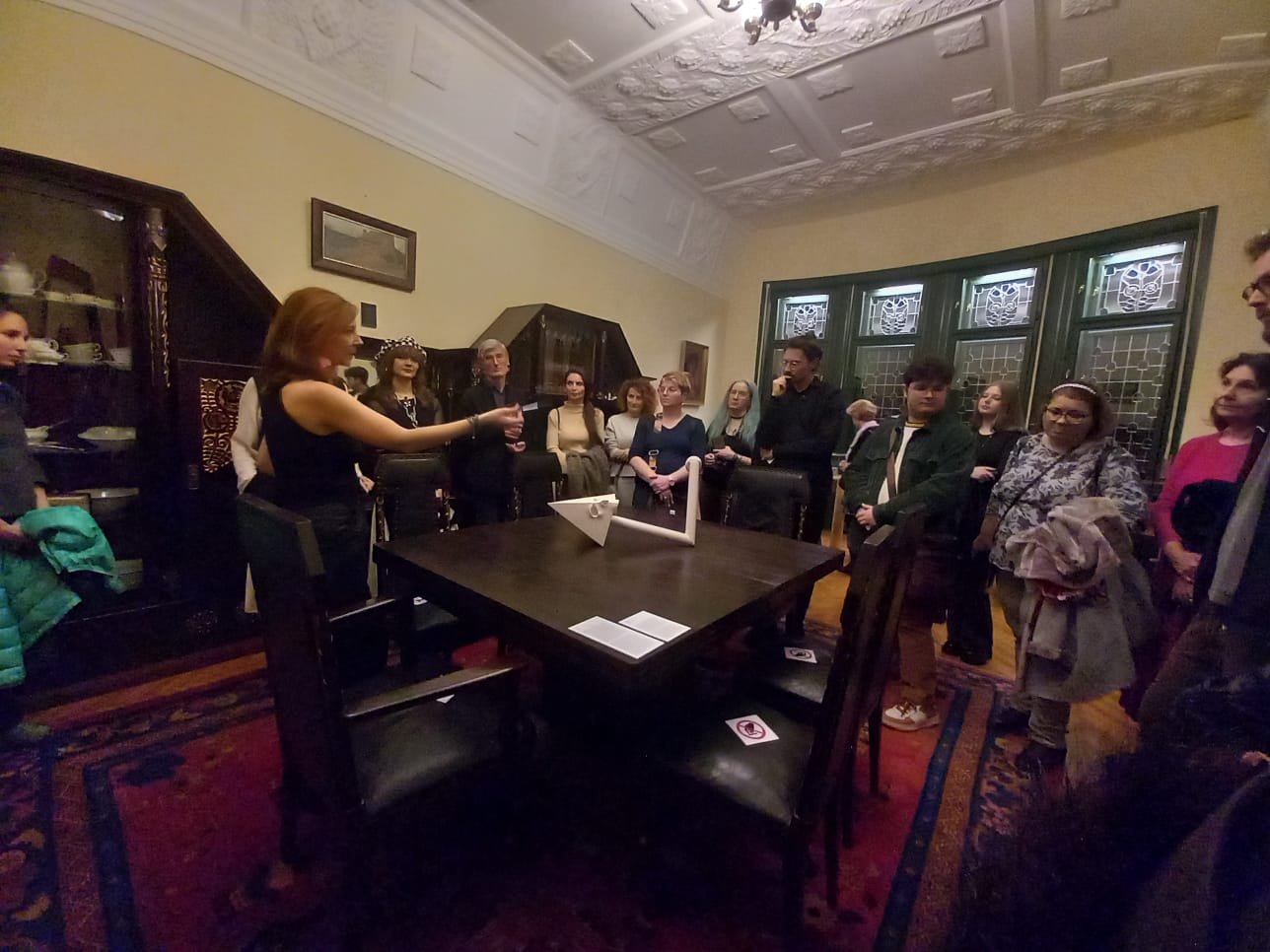 A megnyitóbeszédeket követően az érdeklődőknek tárlatvezetésen mutatták be a kiállított műalkotásokat, amelyek az épület valamennyi termében fellelhetők. A szolgáló szobájában például egy olyan alkotást tekinthettek meg a műkedvelők, amelynek alkotója személyesen is jelen volt: a vajdahunyadi származású Ana Adam maga beszélt a szemlélődőknek A törpe megmenti a Napot címet viselő alkotásáról.
