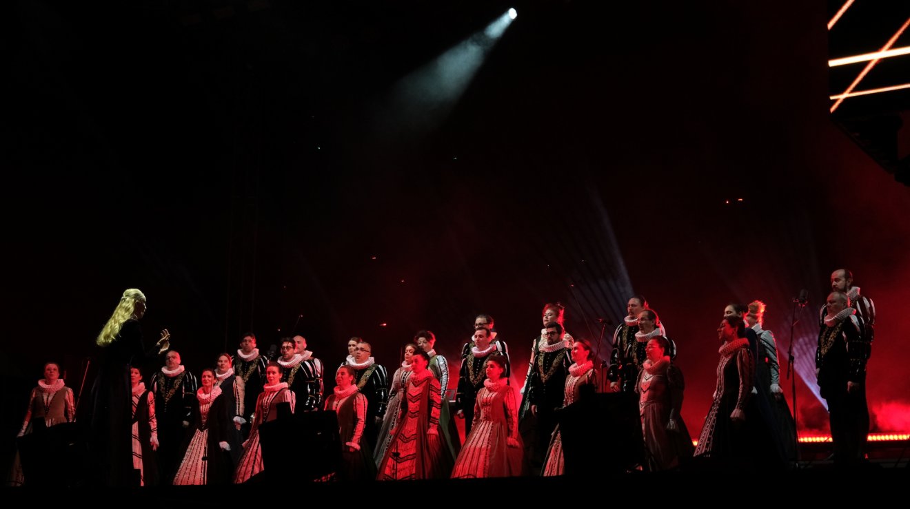 A Madrigal – Marin Constantin Nemzeti Kamarakórus Jocuri címmel mutatta be koncertjét pénteken este a Szent László téren, ami magyarul egyként fordítható a táncok és a játékok szóval is, és ez a jelentésbeli egybecsúszás nagyon is illett a péntek esti koncertre, mert a hangverseny játékos, művészi formában idézte meg a főként román folklór zenei és tánchagyományait is.