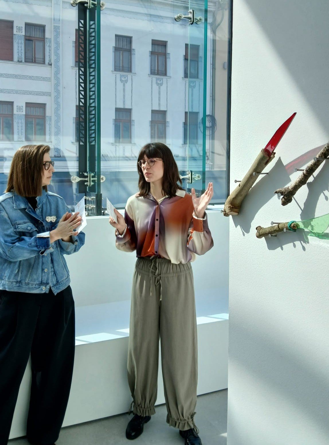 Ezt követően a két szakember részletesen bemutatta a kiállított műveket, de a sajtóbejáráson jelen volt két kiállító művész is, a szlovén Maruša Sagadin és az ukrán Siggi Sekira, akik saját munkáikról is beszéltek.