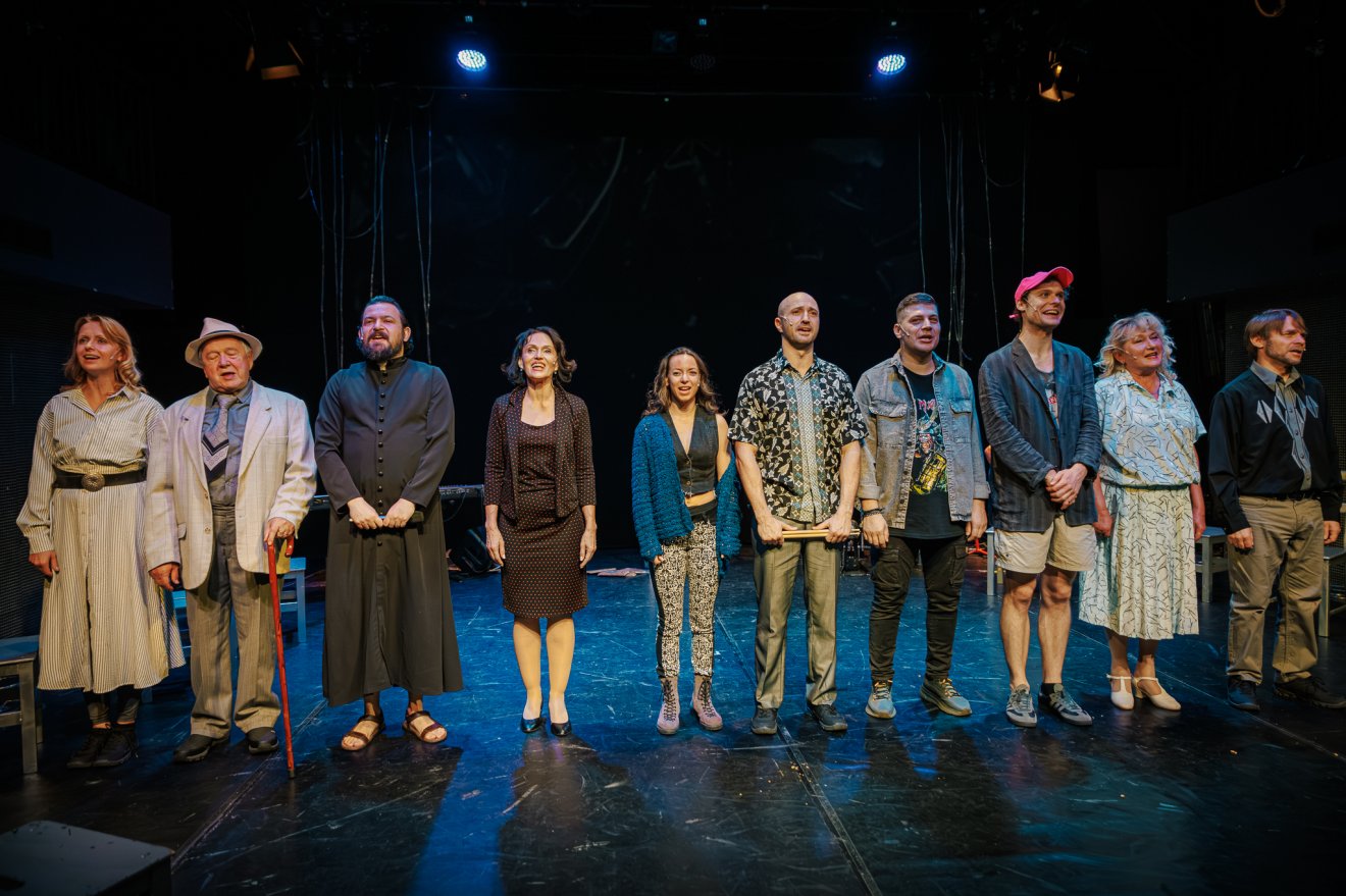 A darabban szintén játszó Molnár Júlia, Hajdu Géza és Kocsis Gyula saját történeteit nem tudtam beazonosítani, de valószínű, hogy az ő ötleteik is beépültek a történetekbe, amelyek nem csupán vallomások, hanem a személyes múlt művészi feldolgozásai.