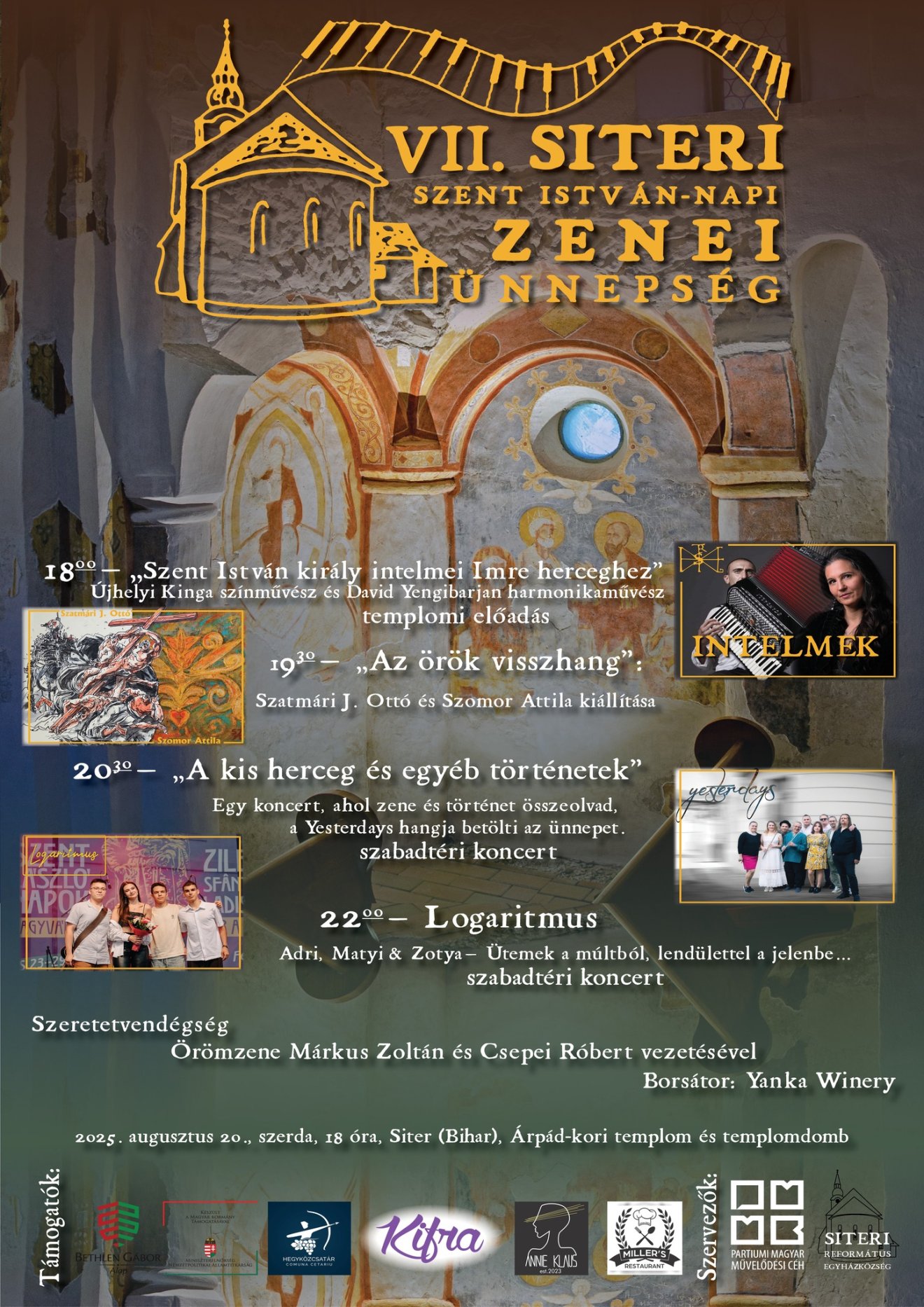 A Siteri Református Egyházközség és a Partiumi Magyar Művelődési Céh közösen immáron hetedik alkalommal arra vállalkozik, hogy augusztus 20-án Szent István-napi Zenei Ünnepséget szervez a siteri Árpád-kori templomban. Idén is értékes műsor várja az odalátogatókat.