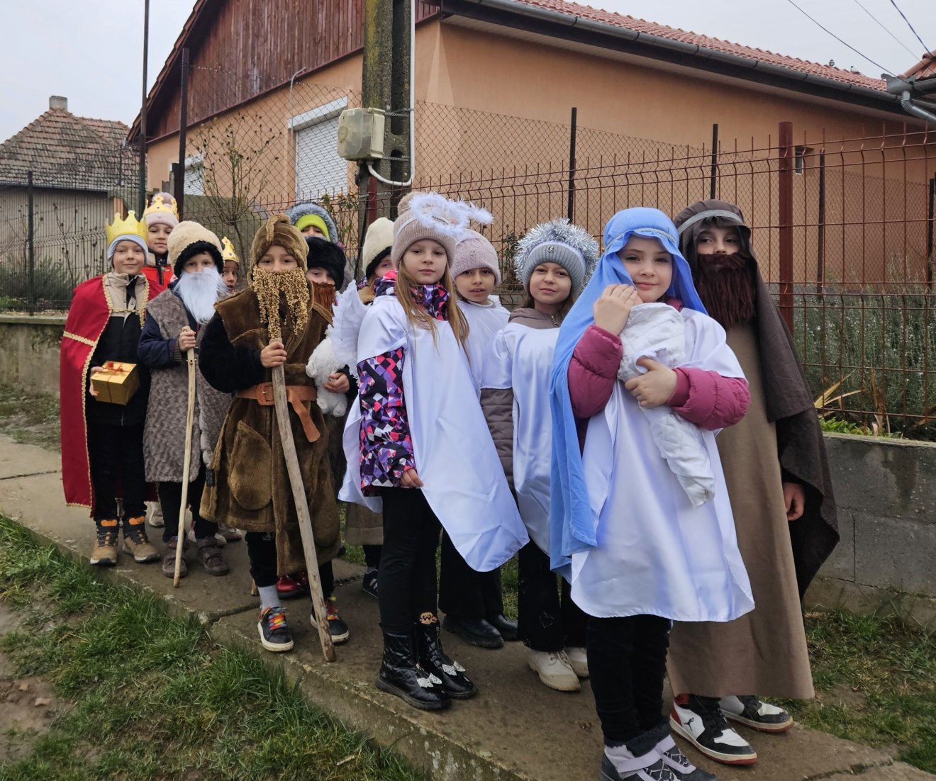 „A Csillagocska betlehemezős csoportunk idén is lelkesen, tiszta szívvel készült az előadásra. Az első osztályos gyermekek örömmel tanulták a szerepeket, a verseket és az énekeket, miközben észrevétlenül megtapasztalták az együttműködés, a figyelem és az egymás iránti felelősség fontosságát. Számukra a betlehemezés nem csupán egy műsor volt, hanem