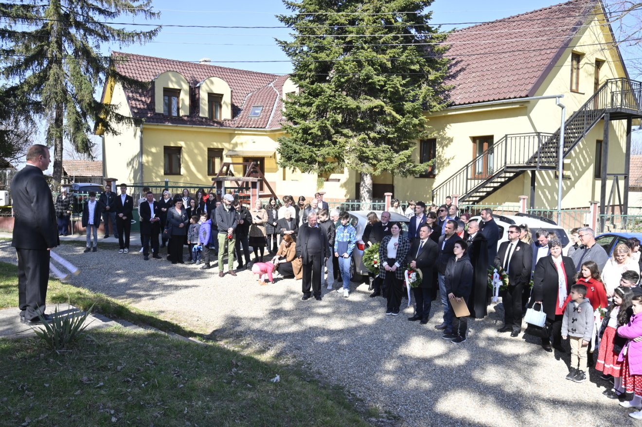 A megemlékezés a templom melletti kopjafáknál folytatódott, ahol Somogyi Lajos polgármester mondott beszédet. Kiemelte: nemcsak a hősökre, hanem azokra az egyszerű emberekre is emlékeznünk kell, akik mindent kockára téve harcoltak a szabadságért. Hozzátette: a múlt áldozatai és a jelen konfliktusai egyaránt a béke fontosságára figyelmeztetnek.