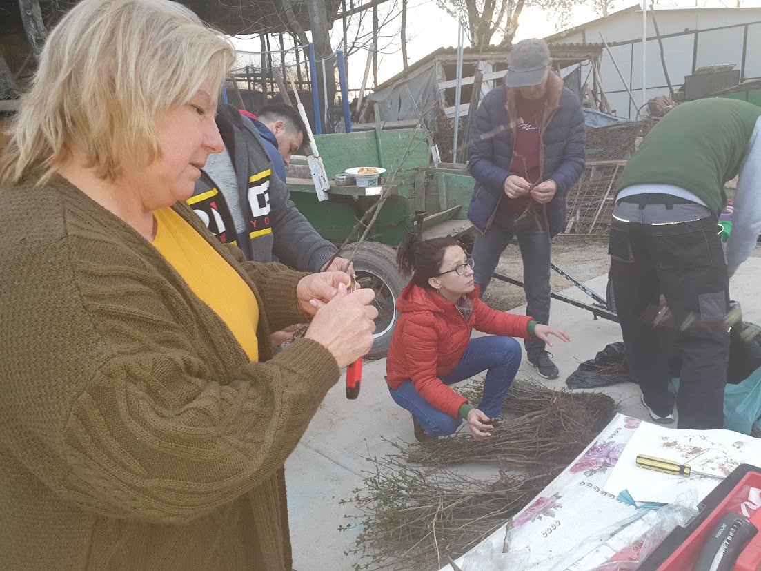 Ez a nyugalom az oltónapon is érződött: a résztvevők az udvaron állva tanultak, beszélgettek, majd maguk is kézbe vették a csemetéket – a nap végére pedig már beoltott fákkal tértek haza.
