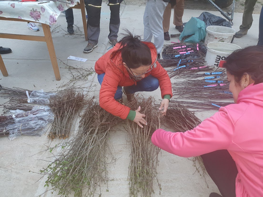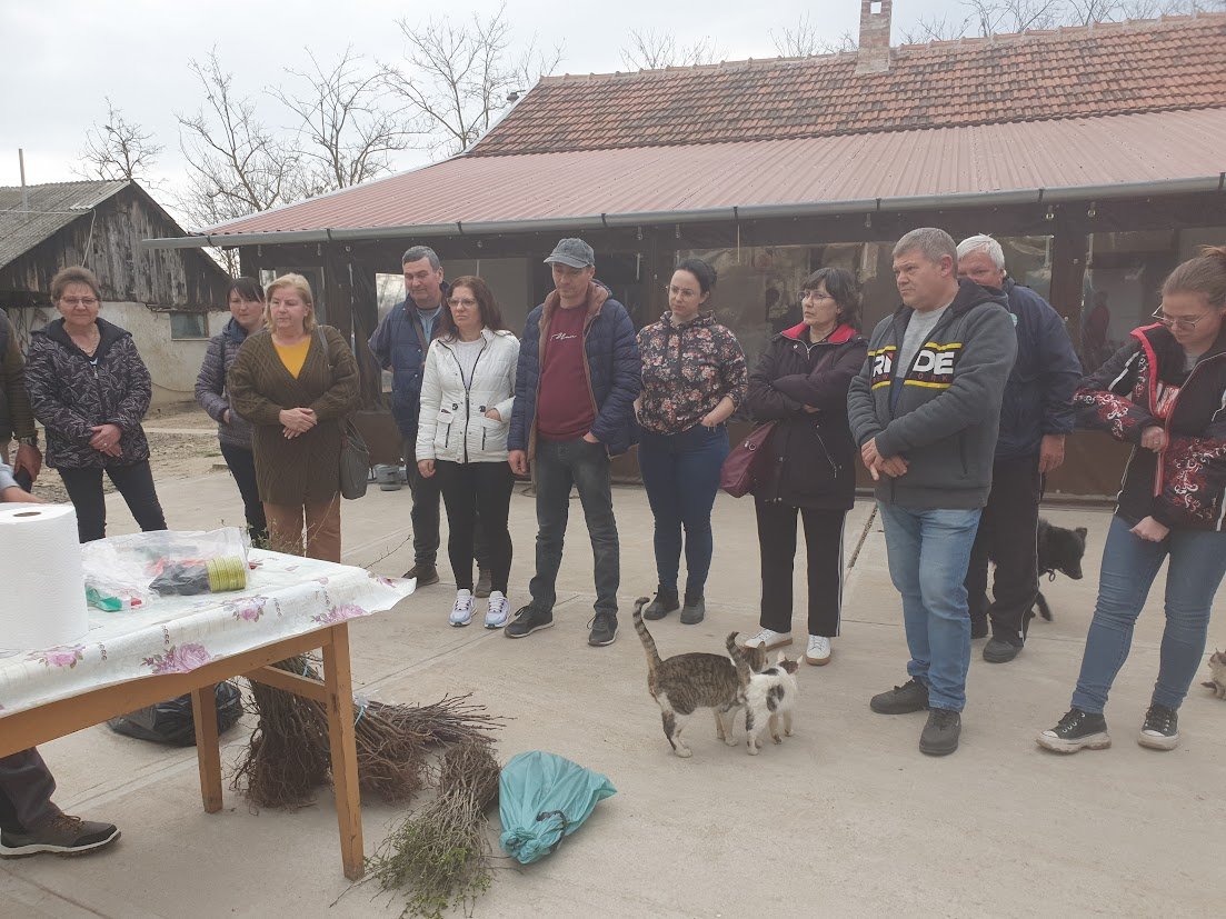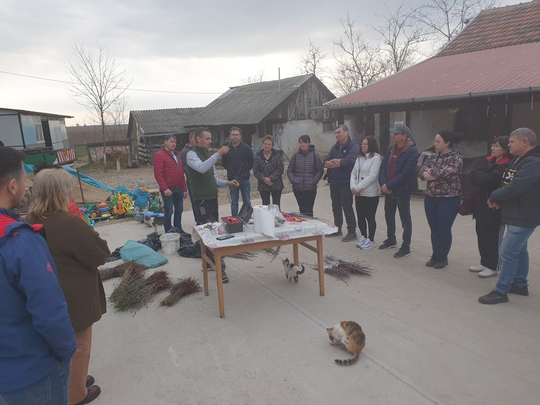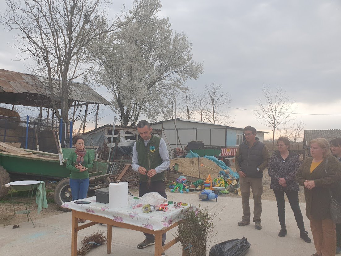 A szalontai határban, Geszt felé vezető poros útról letérve érkeztek a résztvevők a Major-tanyára, ahol már gyülekezett a kisebb közösség. A résztvevőket Bíró Blanka helyi falugazdász köszöntötte, majd Huszár Antal gyümölcskertész mutatta be az oltónapok hátterét.