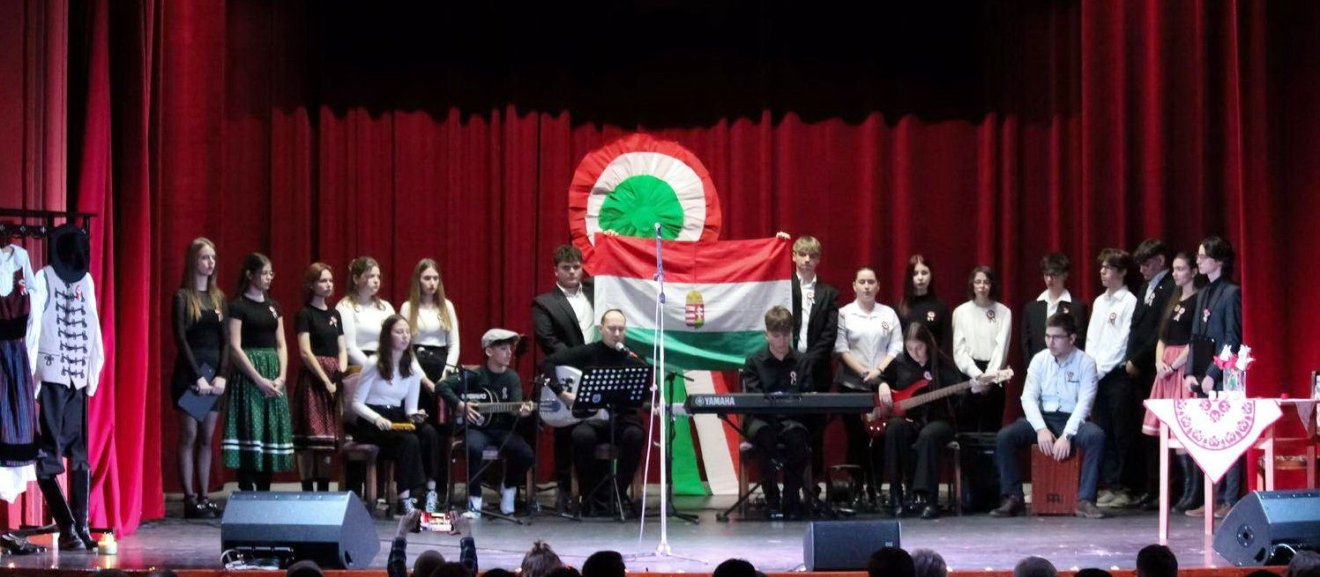 Elsőként a műsorvezető, Kun Tünde magyartanár köszöntötte az ünneplőket egy Jókai Mór-idézettel:„Látjátok ezt a háromszínű kokárdát itt a keblemen? Ez legyen a mai dicső nap jelvénye! Ezt viselje minden ember, ki a szabadság harcosa! Ez különböztessen meg bennünket a rabszolgaság zsoldoshadától. E három szín képviseli a három szent szót: szabadság, egyenlőség, testvériség. Ezt tűzzük kebleinkre mindannyian, kikben magyar vér és szabad szellem lángol!”
