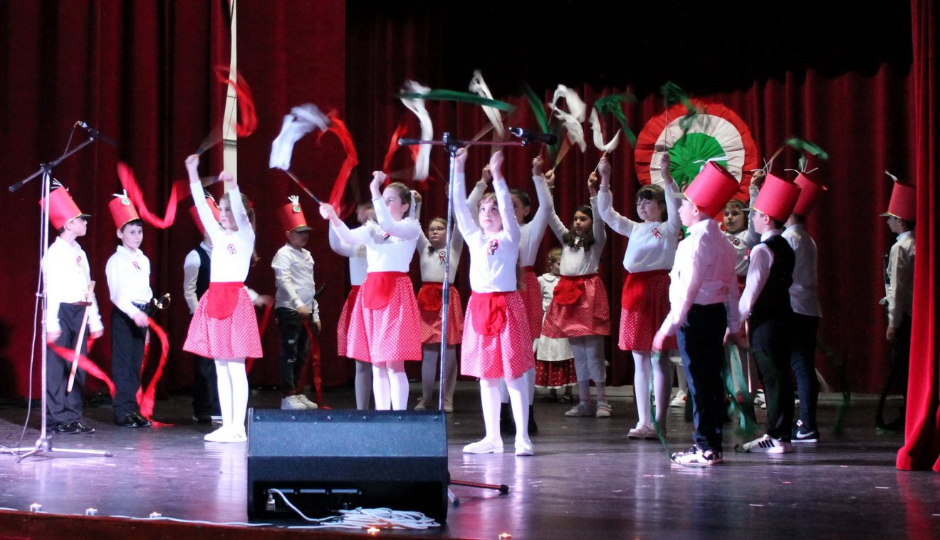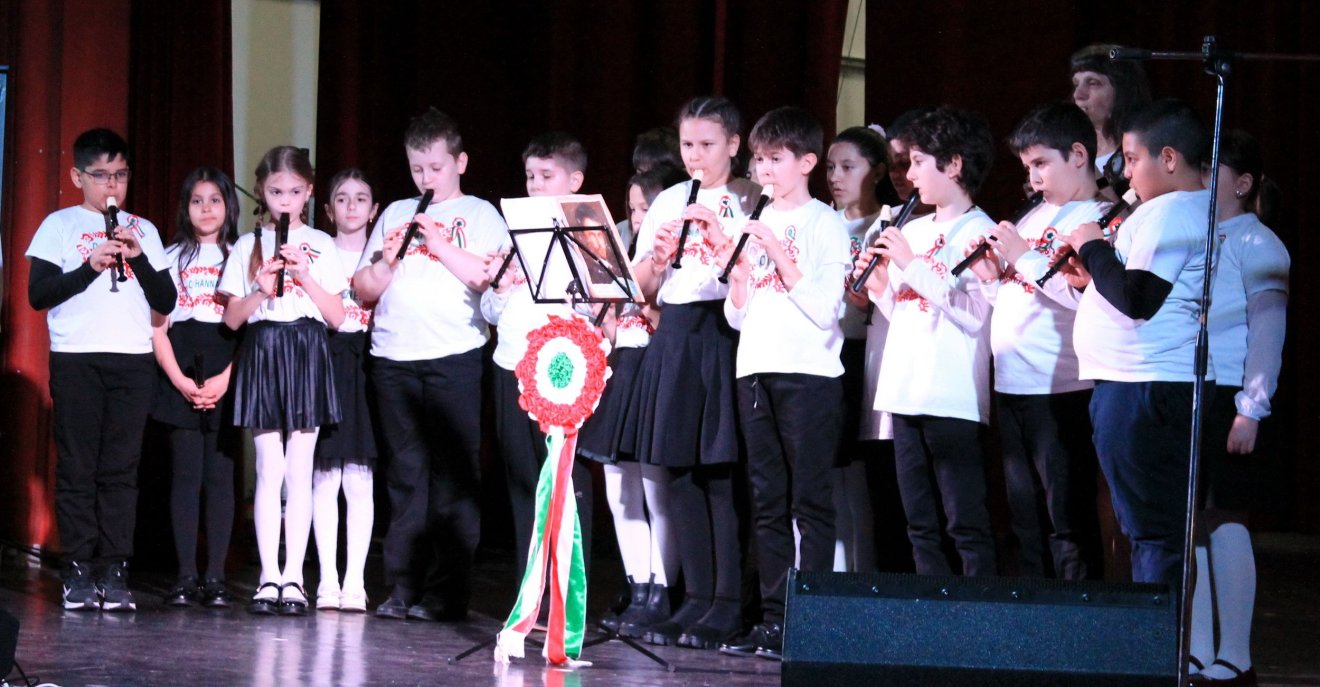 A Horváth János Elméleti Líceum diákjai Március idusa címmel verses-zenés jelenettel elevenítették fel március 15-e legfontosabb történéseit. Felkészítő tanáraik Farkas Cecília, Szabó Melinda, Zatoschil Ballai Zsuzsa, Bordás Mária és Nyírő Szabolcs voltak. Ezután Demeter Stefánia Katalin kolozsvári konzul olvasta fel Orbán Viktor miniszterelnök külhoni magyarokhoz írt üzenetét. „Ünnepi ruhát veszünk magunkra, kitűzzük a kokárdát, így idézzük fel azt a páratlan tisztaságú pillanatot, amely különleges helyet foglal el a világtörténelem dicsőséges forradalmainak sorában. Emlékezünk hőseinkre, a márciusi ifjakra, akik úgy győztek az elnyomás felett, hogy a felforgatás helyett a rendet, a háború helyett a békét, a halál helyett az életet tűzték zászlajukra. Hitték: a világ célja a boldogság, ehhez pedig a legfőbb eszköz a szabadság” – hangzott el az üzenetben.