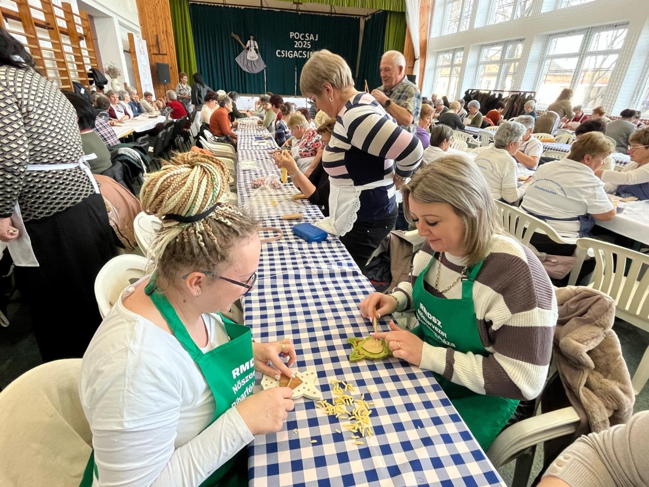 A Krecz Enikő vezette félegyházi RMDSZ-Nőszervezet tagjai, kiegészülve Kelemen Zoltán polgármesterrel és Biró Rozália parlamenti képviselővel, a Nőszervezet országos elnökével Szőllősi Roland pocsaji polgármester meghívásának eleget téve bekapcsolódtak a szomszédos településen zajlott Csigacsináló fesztiválba, ahol szorgos asszonykezek gyúrták, nyújtották, vágták és csavarták a levesbe való csigatésztákat. A remek hangulatú összejövetelen kulturális műsor is volt: fellépett Szabó Melinda néptánccsoportja Bihardiószegről, illetve a létavértesi néptánccsoport is, valamint tehetséges citerások, óvodások és iskolások is szórakoztatták produkciójukkal az egybegyűlteket. A rendezvény szeretetvendégséggel ért véget, finom töltött káposzták és sütemények voltak feltálalva.