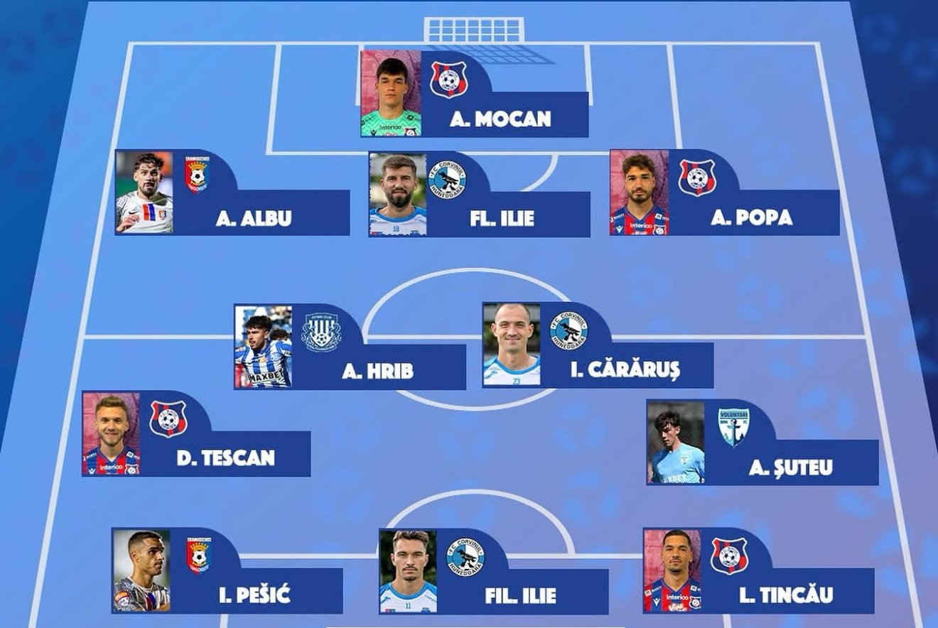 A fiatal kapus, Arsenie Mocan, aki nemrég az U18-as válogatott meghívóját is megkapta, a hátvéd Abel Popa, a középpályás Dragoş Tescan és a támadó Luca Tincău képviselik a váradi együttest. Érdekesség, hogy a piros-kékek minden poszton adtak egy játékost a legjobbak közé.