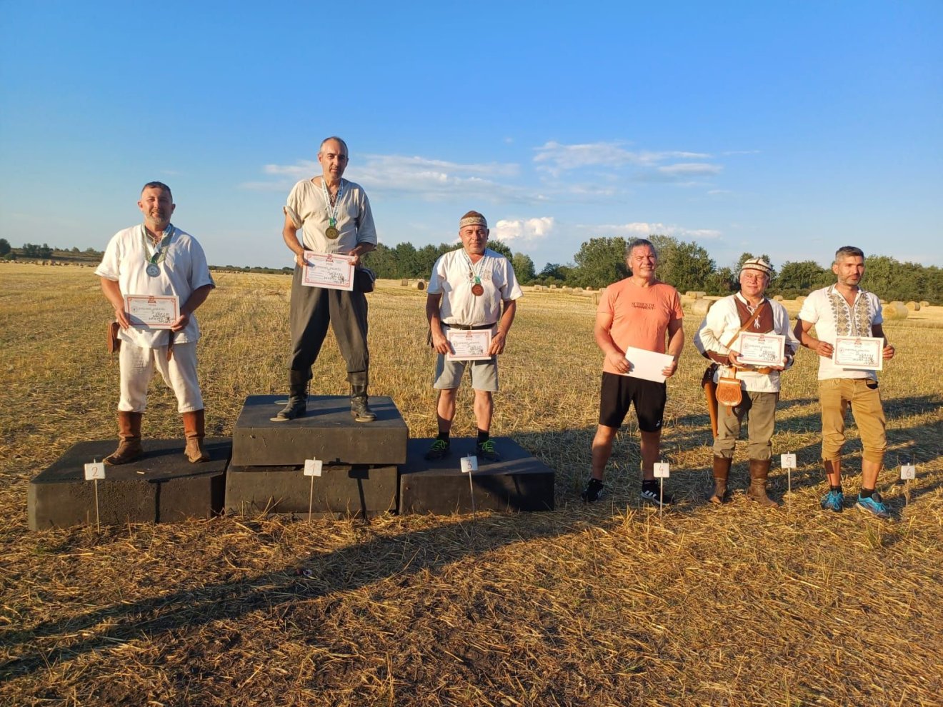 A távlövés lebonyolításához egy 500 méter hosszú és 60 méter széles pálya lett kialakítva. Mérőműszerrel, lézeres beméréssel történt a táv meghatározása. Ebben a számban az íjak és a nemek szerint voltak megkülönböztetve a kategóriák. A férfiaknál az 51 font alatti történelmi íjak kategóriájában a Tarnava Archery képviselője, Rotariu Dumitru nyert 341,03 méterrel, a dobogó két alsó fokán Gothárd István (327,31) és Tóth Imre (294,47) zárt. Az 51 font felettiek csoportjában ezúttal Gothárd lőtt a legmesszebbre, 398,39 méterrel, az ezüstérmes Dumitru Rotariu (397,96), a bronzérmes pedig Ladányi Árpád Csaba (336,25) lett.