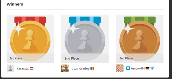 A feszült és izgalmas partik után a verseny szoros küzdelmet hozott: az első helyet Karácsony Zsolt, a Nagyváradi Crișul játékosa szerezte meg 3,5 ponttal, a második helyen Titus Bădic (Nagyvárad) végzett 3 ponttal, míg a harmadik helyet Nagy Péter (Németország) foglalta el 2,5 ponttal.